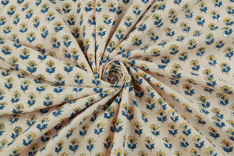 Floral Handblock Printed 100% Pure Soft Cotton Fabric