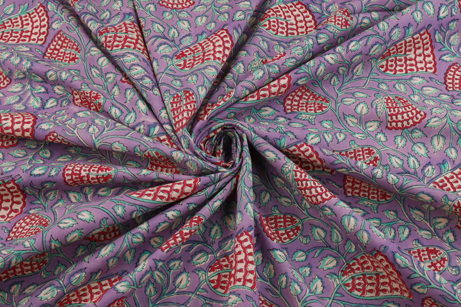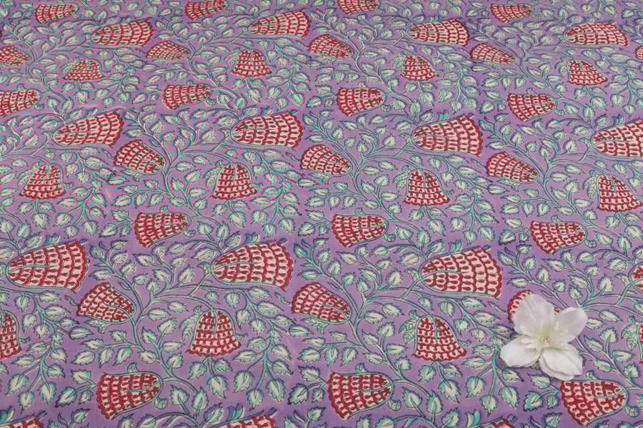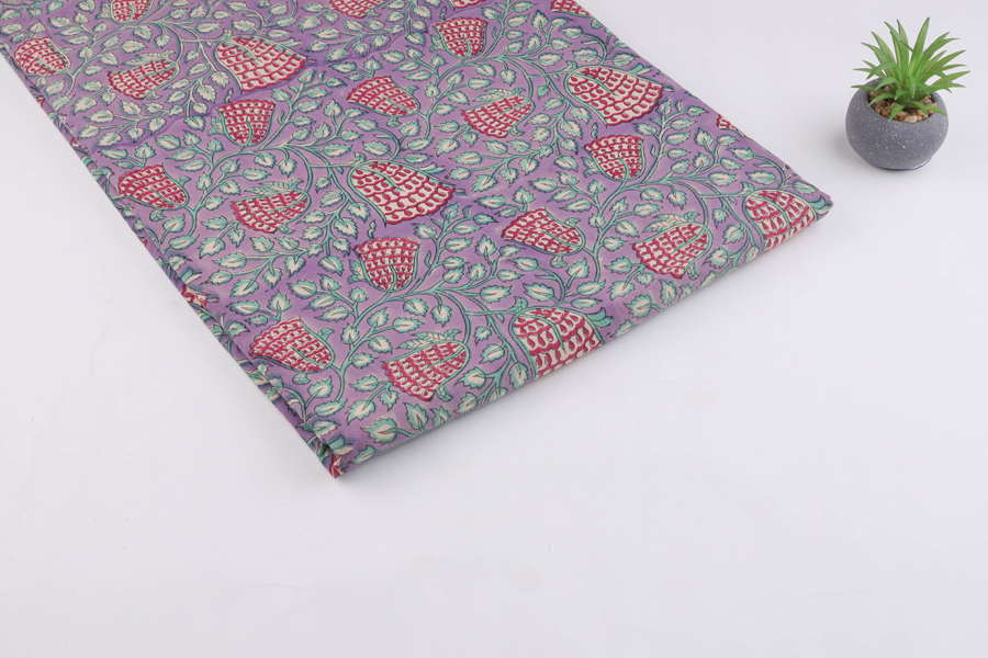 Lilac Purple Pure Soft Cotton HandBlock Printed Fabric