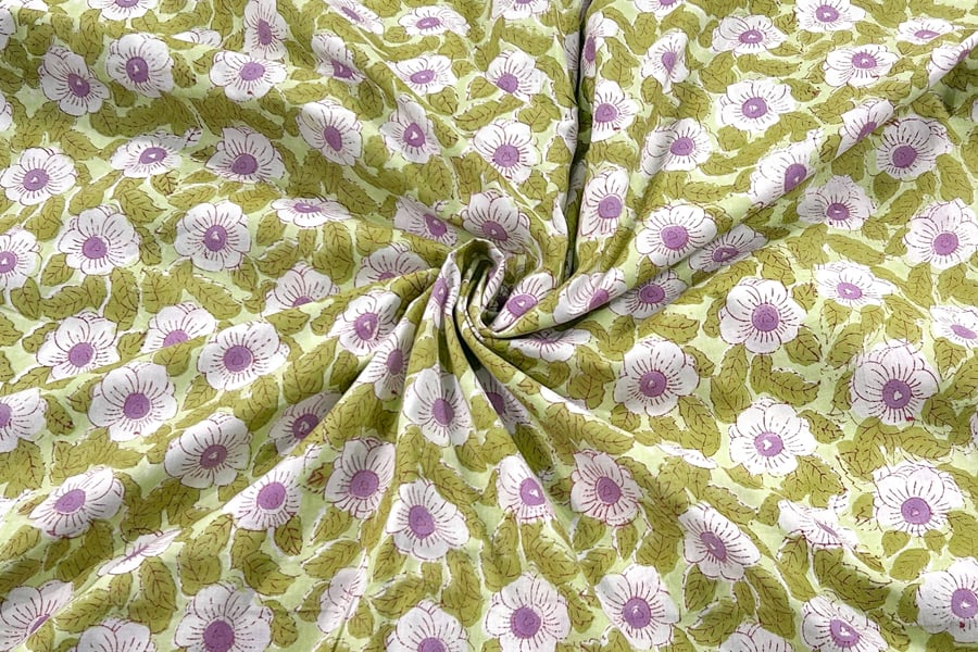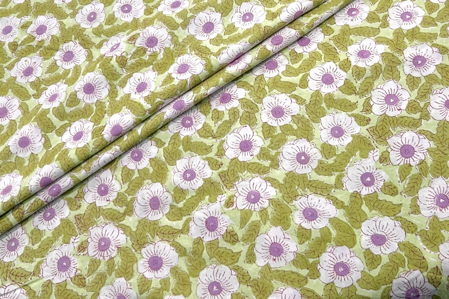 Lime Pastel Green – Floral Handblock Printed 100% Pure Cotton Fabric