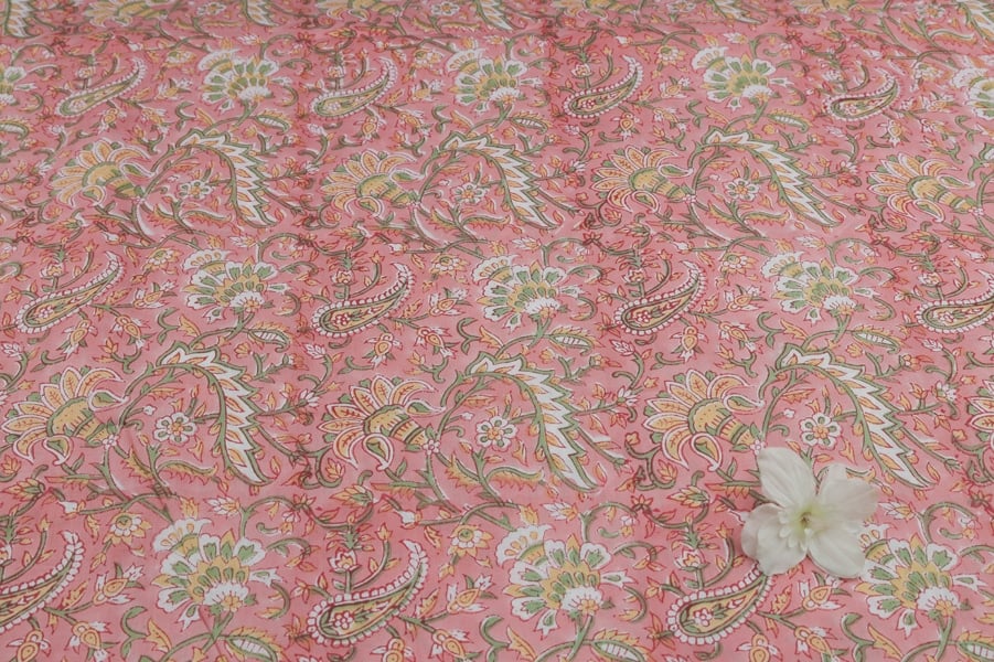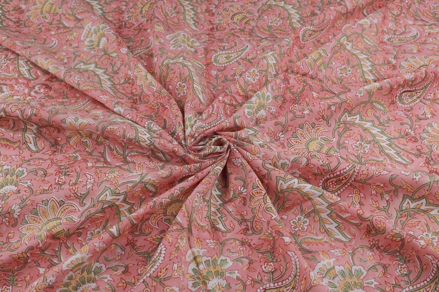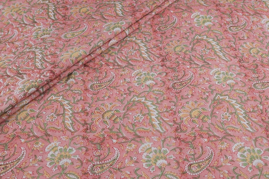 Mauvelous Pink Floral Handblock Printed 100% Pure Soft Cotton Fabric