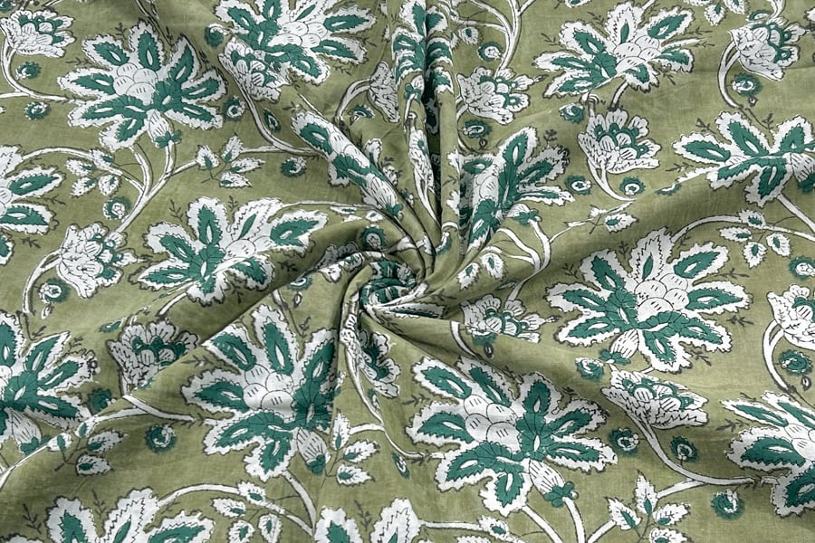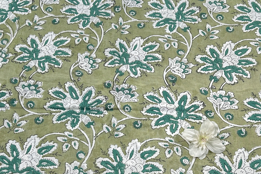 Mehendi Green – Floral Handblock Printed 100% Pure Cotton Fabric