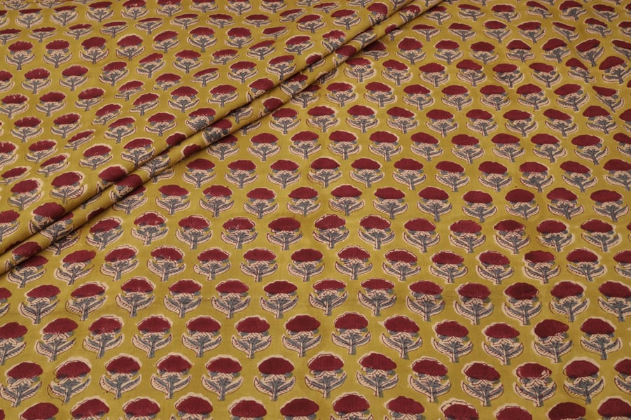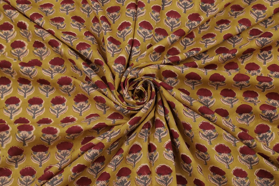 This Fabric is handloom woven and / or hand printed using vegetable dyes. There might be slight irregularities in the motif & colour shade which is a result of human involvement & is a hallmark of fabrics made by hand. Since the fabric is dyed using natural, vegetable dyes, it may rub dry or bleed colour on coming in contact with water for the first time.