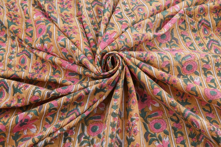 Floral Handblock Printed 100% Pure Soft Cotton Fabric