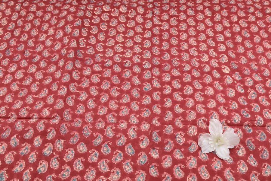 This Fabric is handloom woven and / or hand printed using vegetable dyes. There might be slight irregularities in the motif & colour shade which is a result of human involvement & is a hallmark of fabrics made by hand. Since the fabric is dyed using natural, vegetable dyes, it may rub dry or bleed colour on coming in contact with water for the first time.