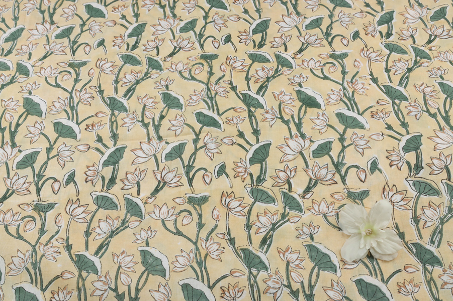 Oatmeal Beige Floral Handblock Printed 100% Pure Soft Cotton Fabric