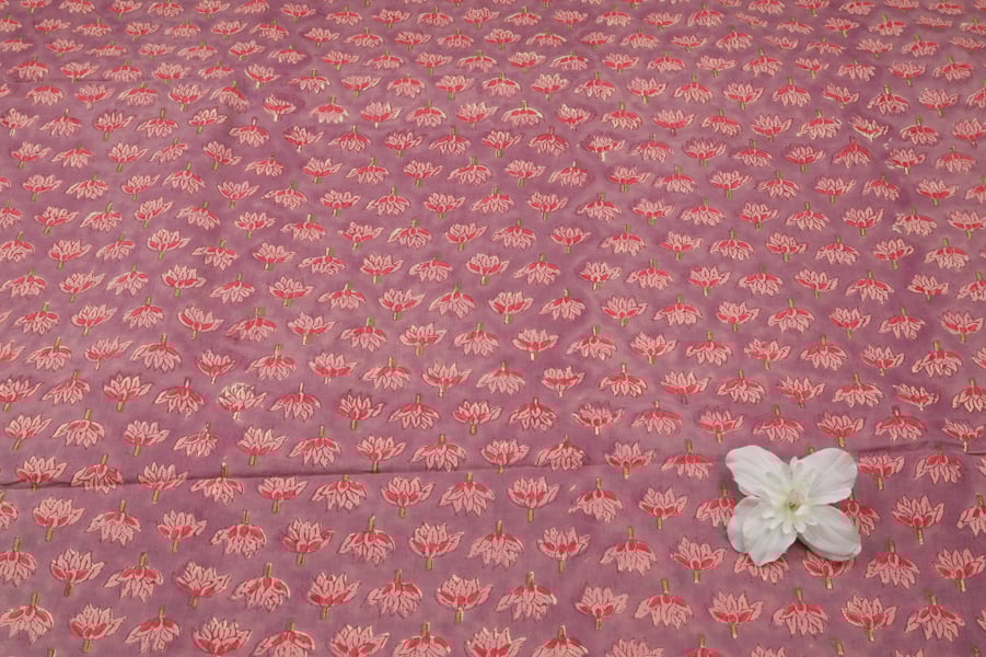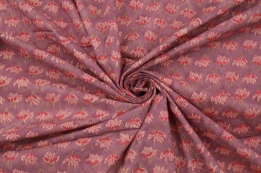 Old Rose Purple Floral Handblock Printed 100% Pure Soft Cotton Fabric