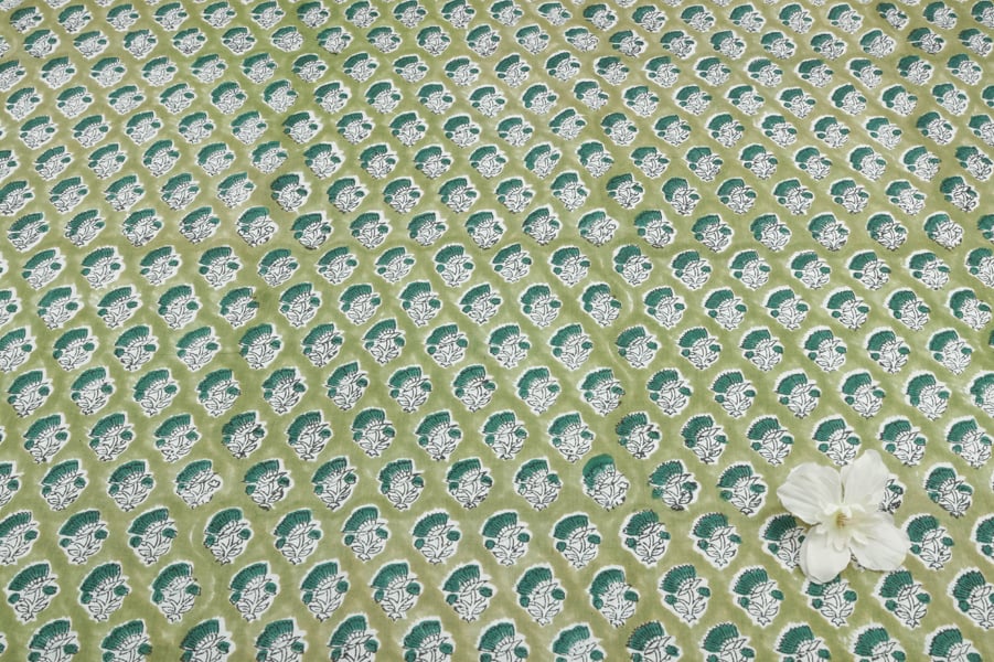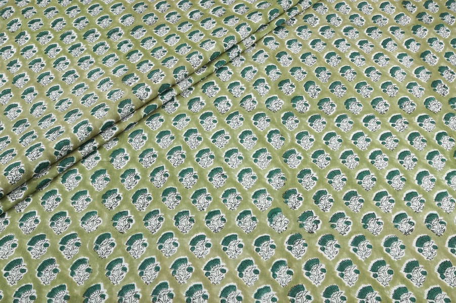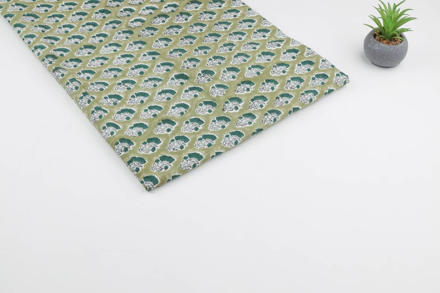 Moss Green Pure Soft Cotton HandBlock Printed Fabric
