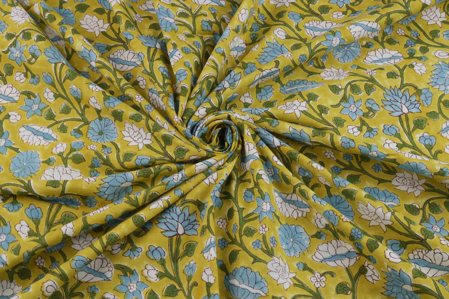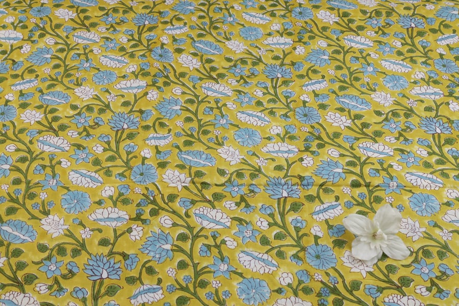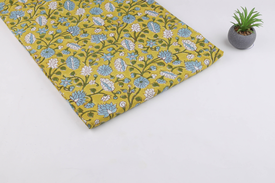 Floral Handblock Printed 100% Pure Soft Cotton Fabric