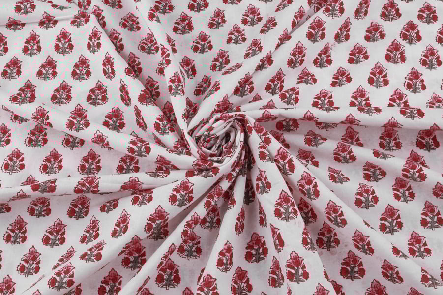 White Floral Handblock Printed 100% Pure Soft Cotton Fabric