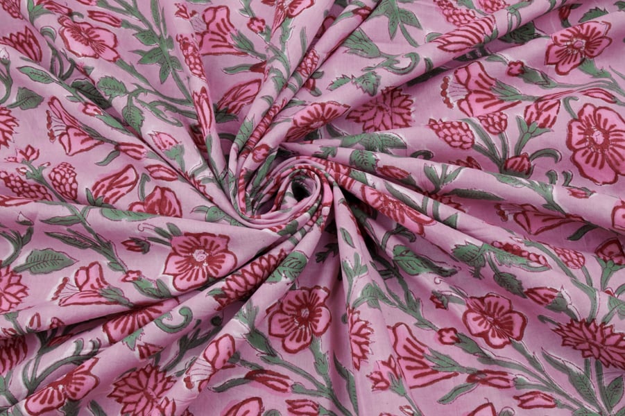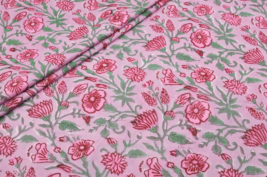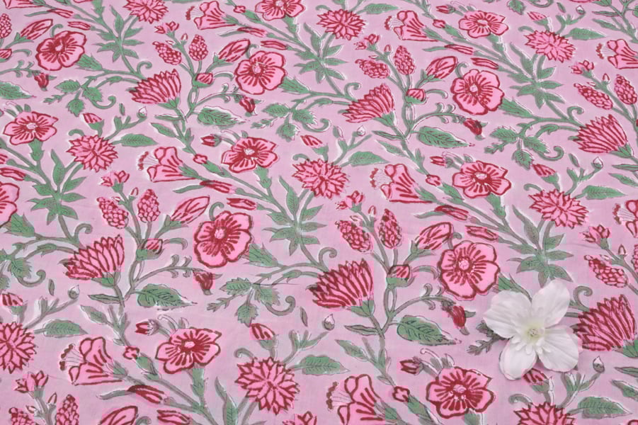 Pastel Petal Pink Floral Handblock Printed 100% Pure Soft Cotton Fabric