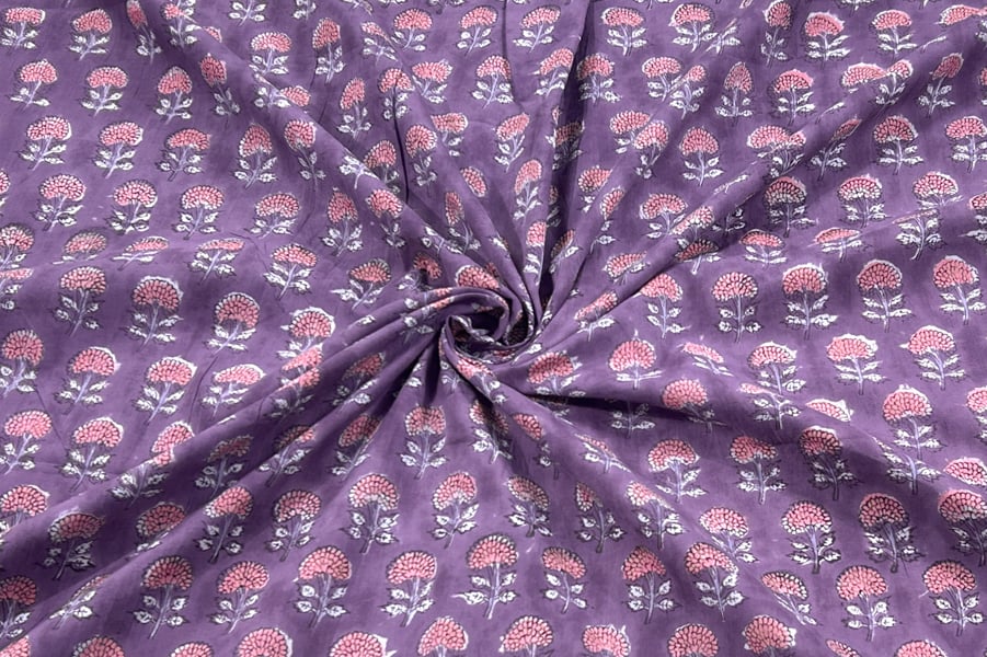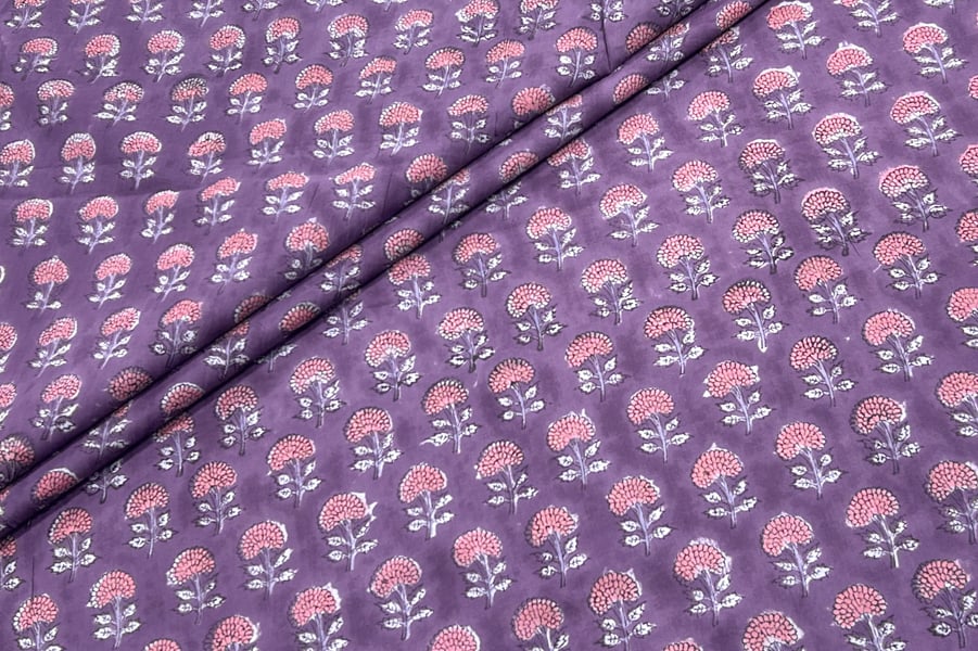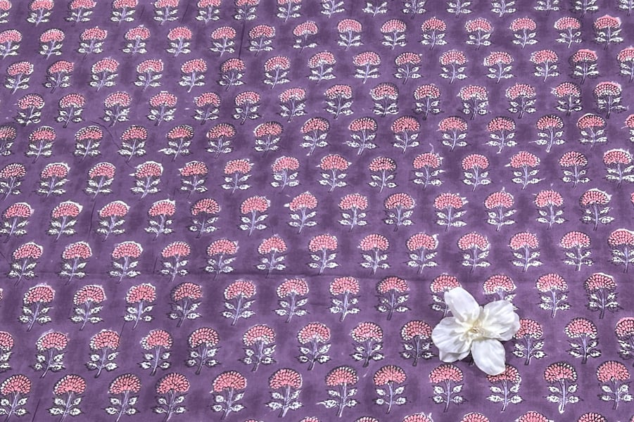 Plum Purple – Floral Handblock Printed 100% Pure Cotton Fabric