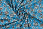 Electric Blue Floral Handblock Printed 100% Pure Soft Cotton Fabric