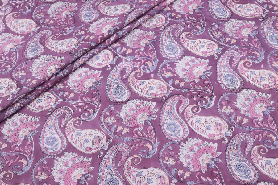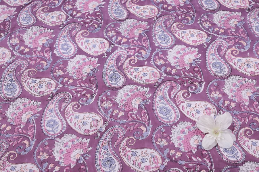 Mauve Purple Floral Handblock Printed 100% Pure Soft Cotton Fabric