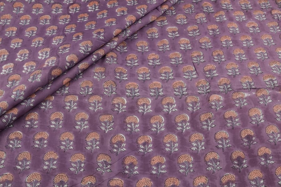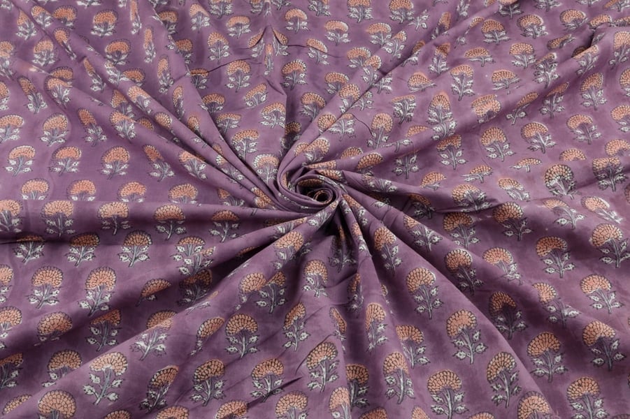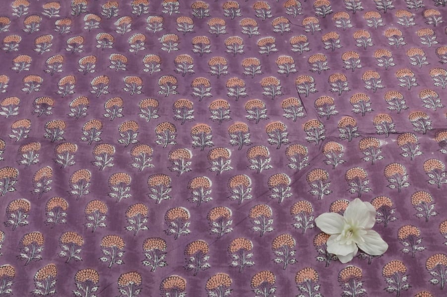 Purple Floral Handblock Printed 100% Pure Soft Cotton Fabric