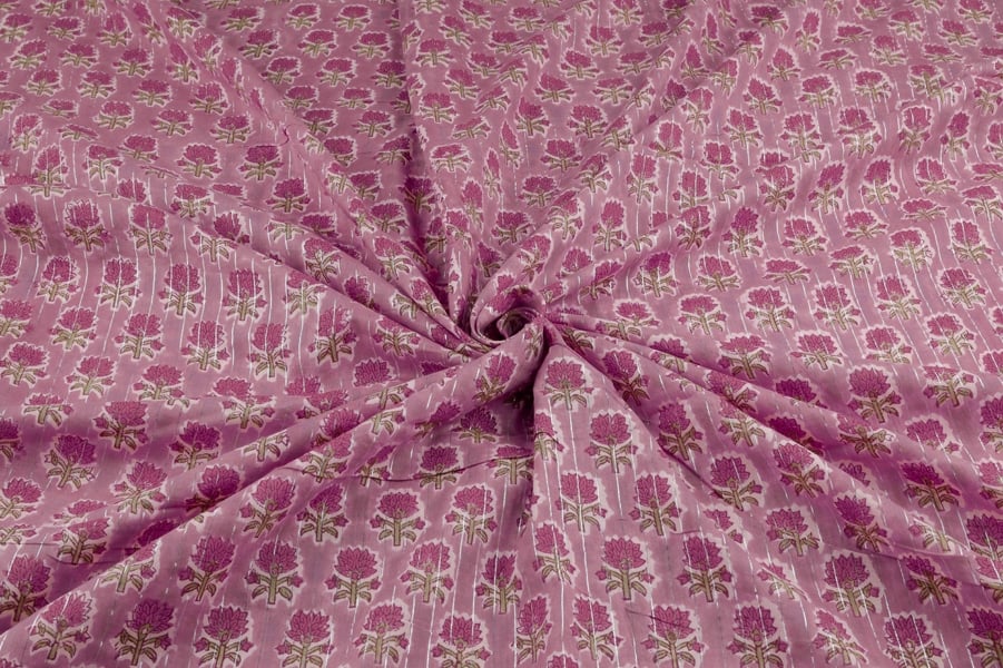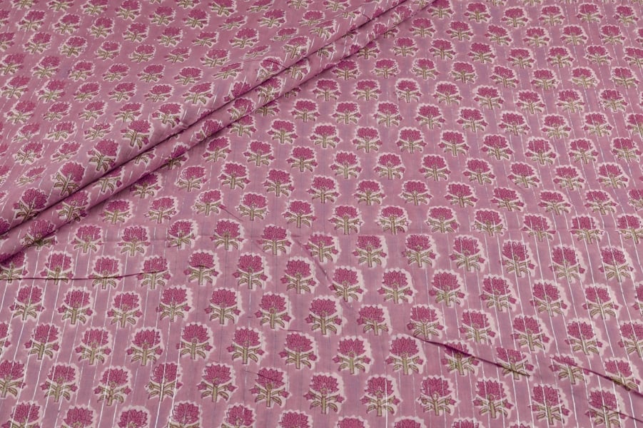 Purple Self-Zari Stripes Floral Handblock Printed 100% Pure Soft Cotton Fabric