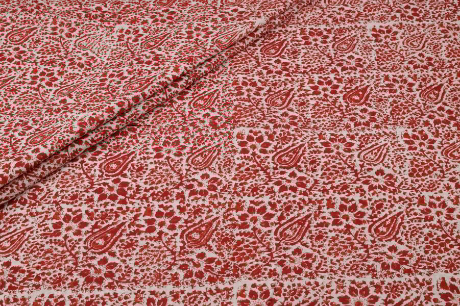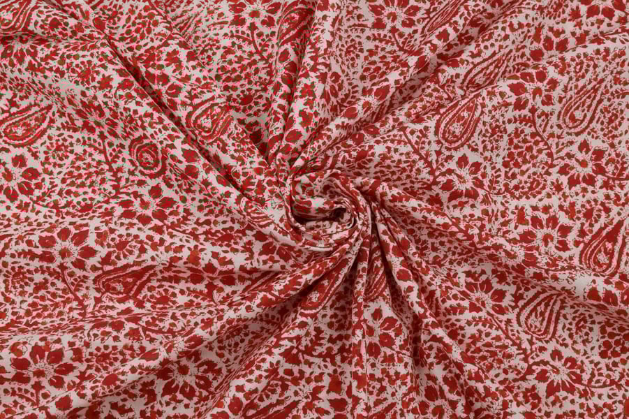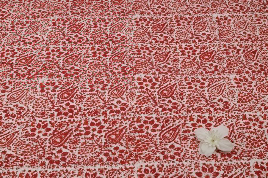 Red Floral Handblock Printed 100% Pure Soft Cotton Fabric