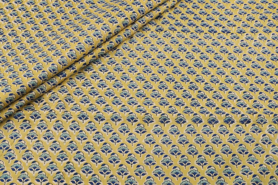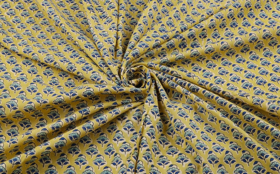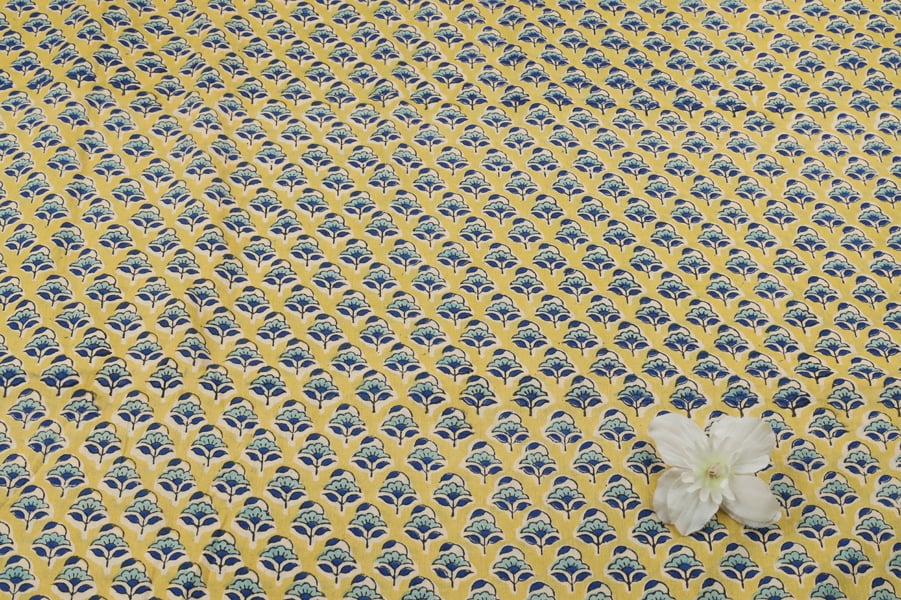 Royal Gold Yellow Floral Handblock Printed 100% Pure Soft Cotton Fabric