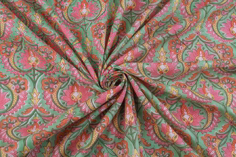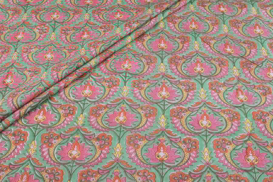 Floral Handblock Printed 100% Pure Soft Cotton Fabric