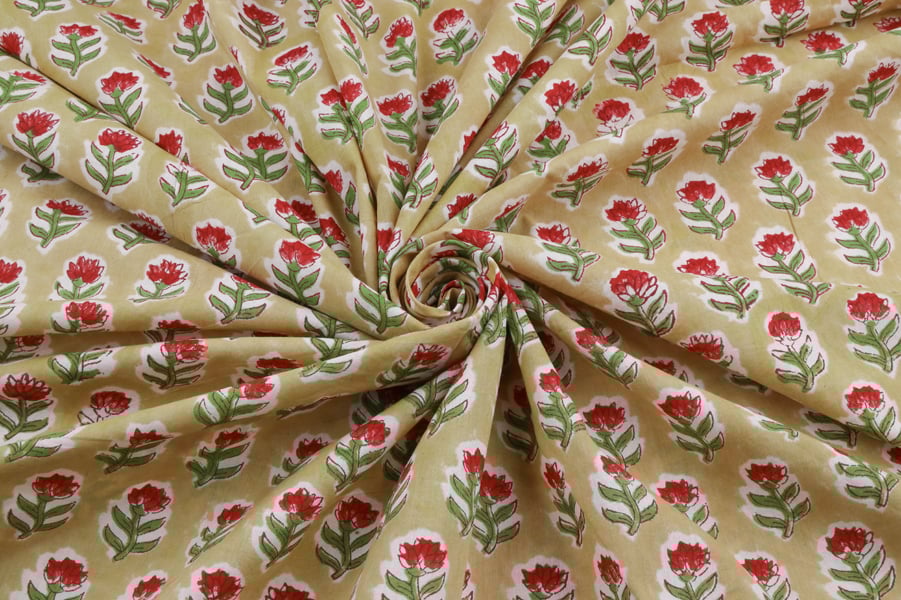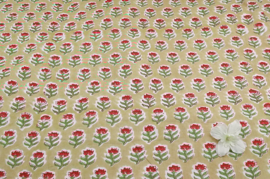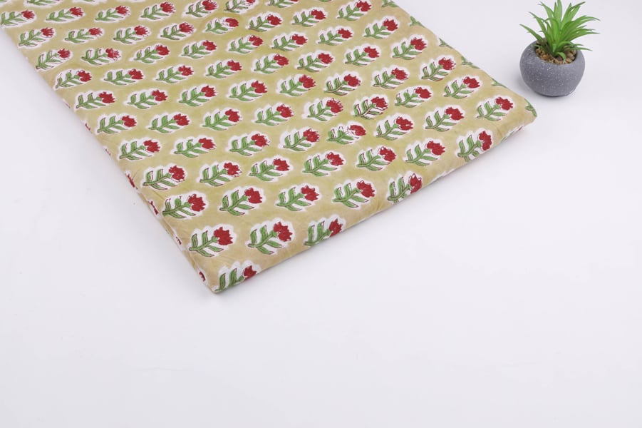 Floral Handblock Printed 100% Pure Soft Cotton Fabric