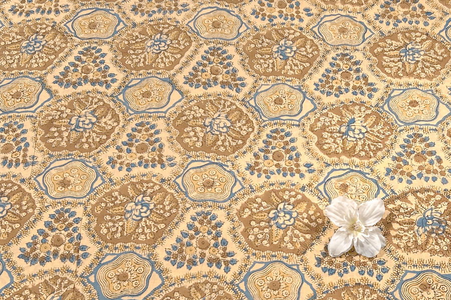 Sand Beige – Floral Handblock Printed 100% Pure Cotton Fabric