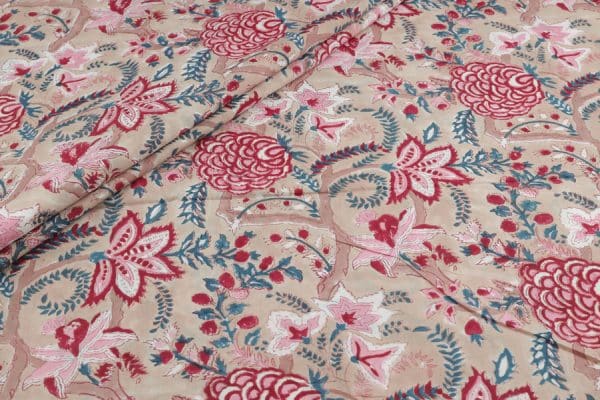 Light Brown Floral Handblock Printed 100% Pure Soft Cotton Fabric