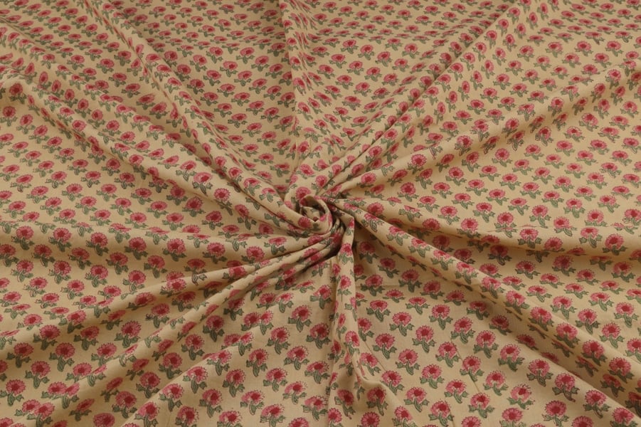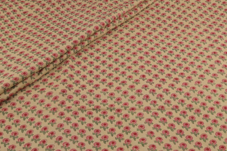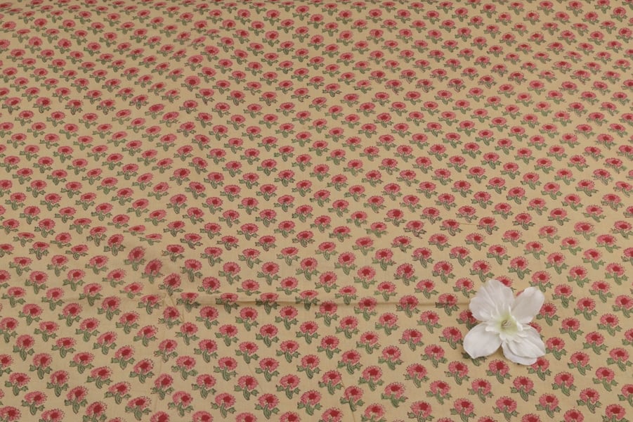 Beige Floral Handblock Printed 100% Pure Soft Cotton Fabric