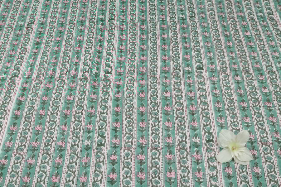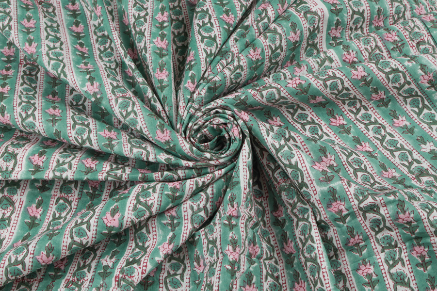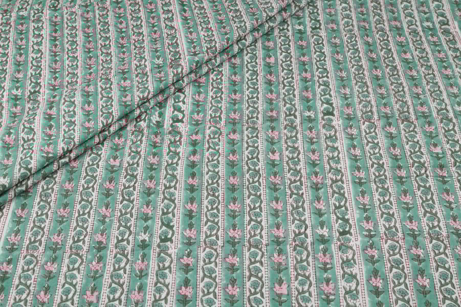 Seagrass Green – Floral Handblock Printed 100% Pure Cotton Fabric