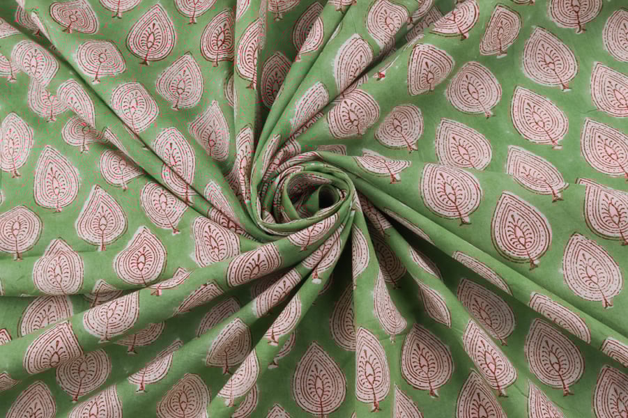Soft Olive Green Floral Handblock Printed 100% Pure Soft Cotton Fabric
