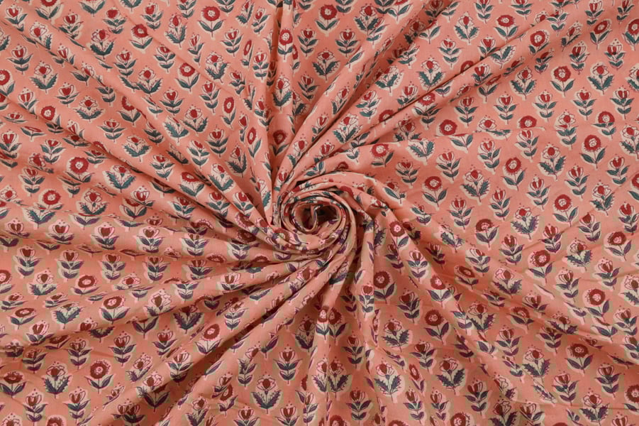 Tangerine Dream Orange Floral Handblock Printed 100% Pure Soft Cotton Fabric