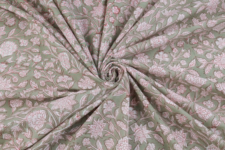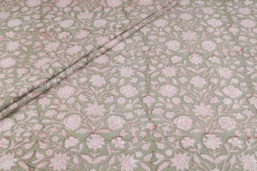 Moss Green Pure Soft Cotton HandBlock Printed Fabric