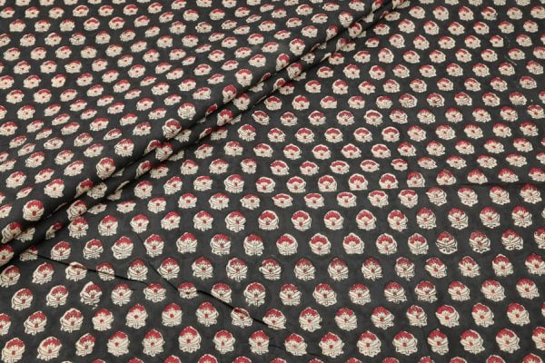 Natural Black Floral Handblock Printed 100% Pure Soft Cotton Fabric