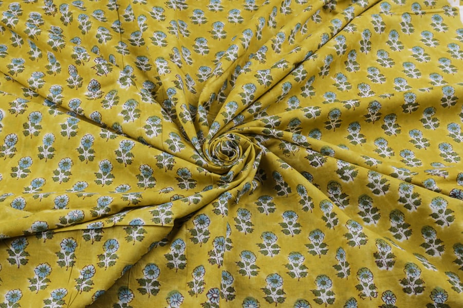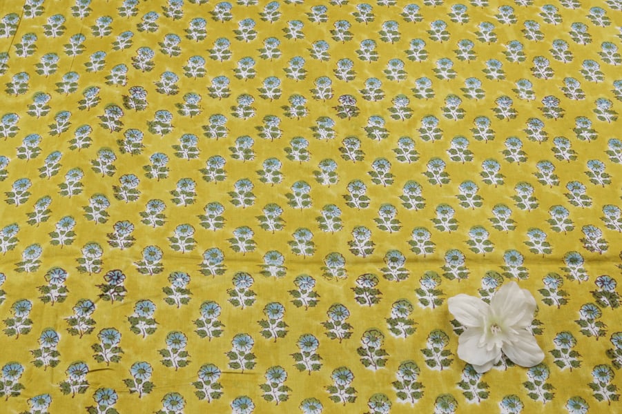 Tuscany Yellow Floral Handblock Printed 100% Pure Soft Cotton Fabric
