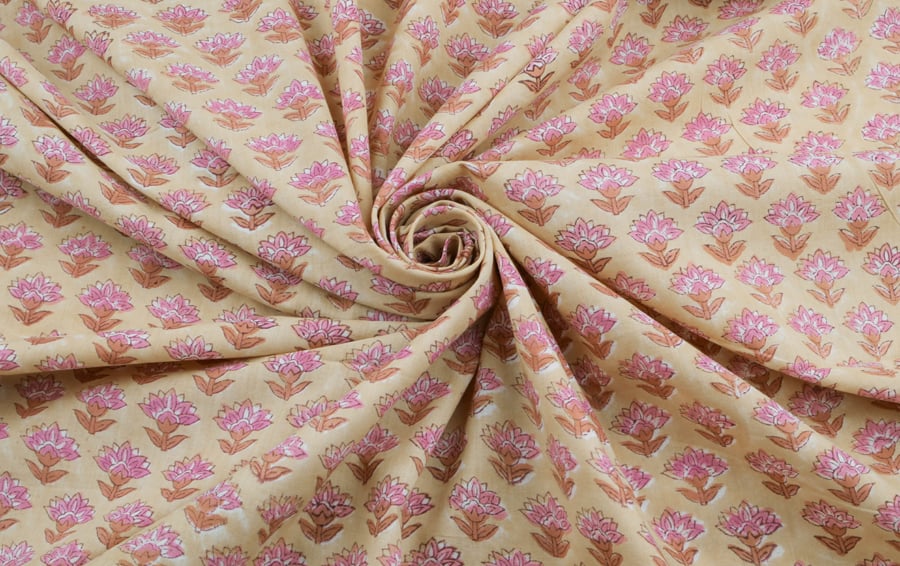Floral Handblock Printed 100% Pure Soft Cotton Fabric