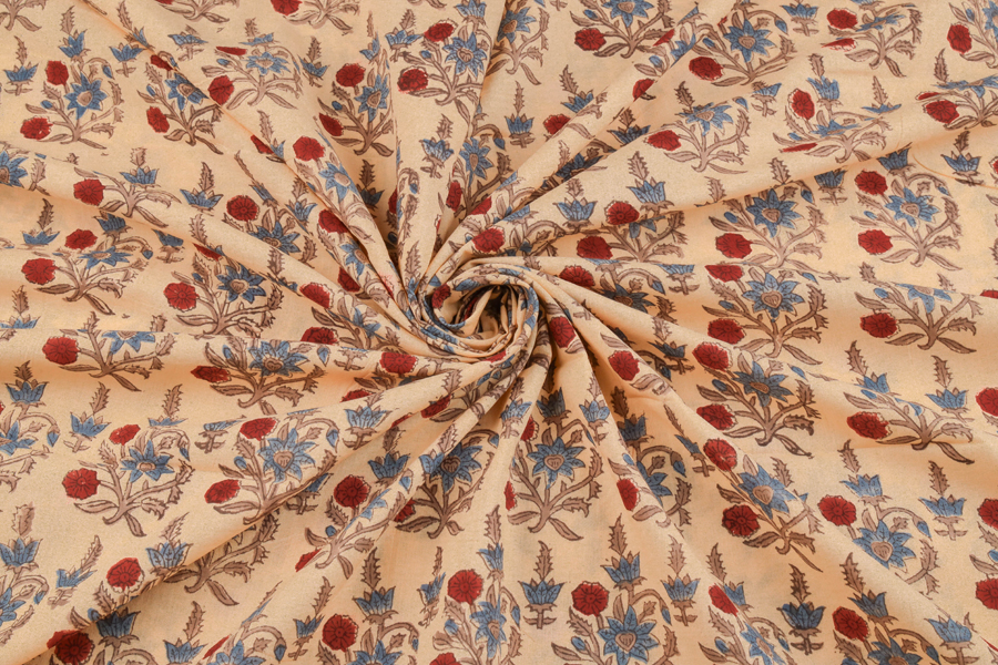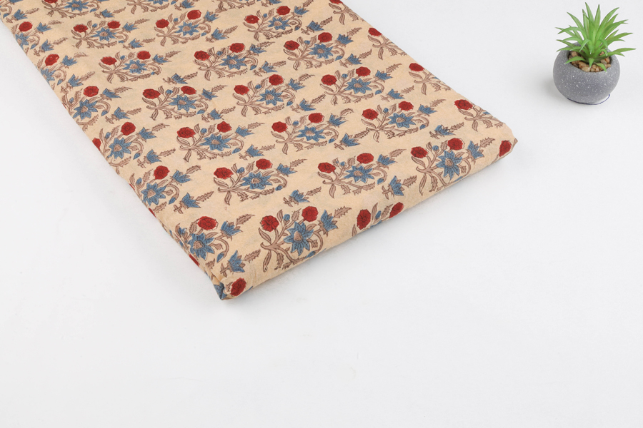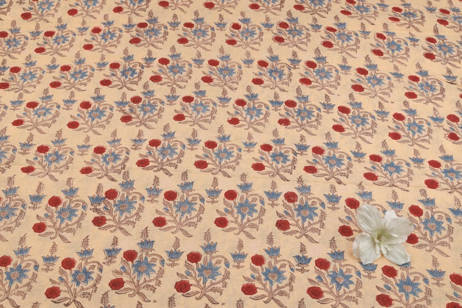 Floral Handblock Printed 100% Pure Soft Cotton Fabric