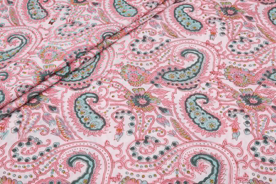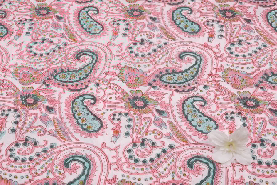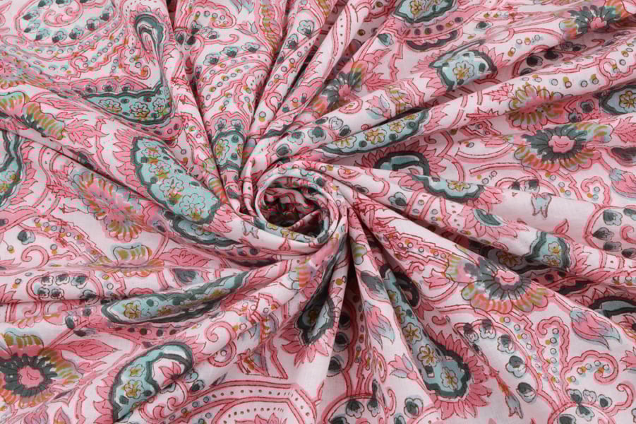 Baby Pink Floral Handblock Printed 100% Pure Soft Cotton Fabric
