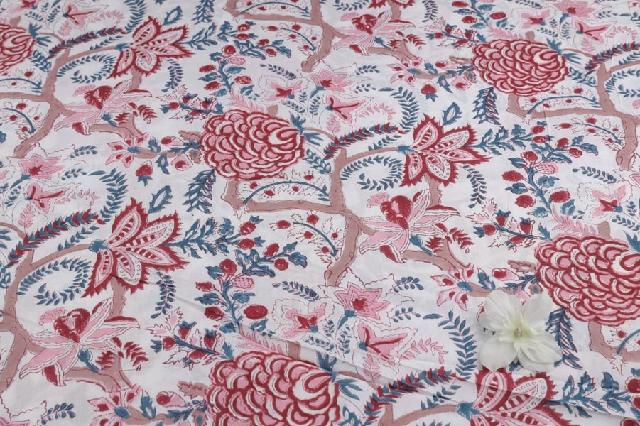 Authentic HandBlock Sanganeri Printed, Eco Friendly Dyes, Pure Soft Cotton Fabric