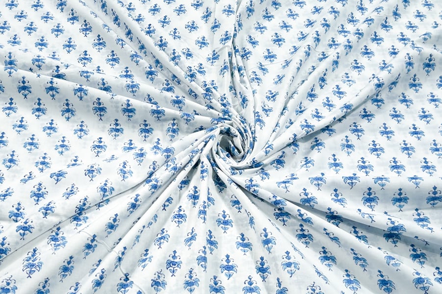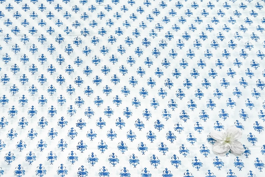 White Floral Handblock Printed 100% Pure Soft Cotton Fabric