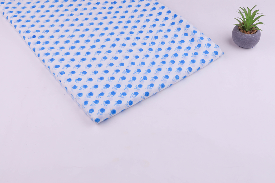 Blue Green Pure Soft Cotton HandBlock Printed Fabric