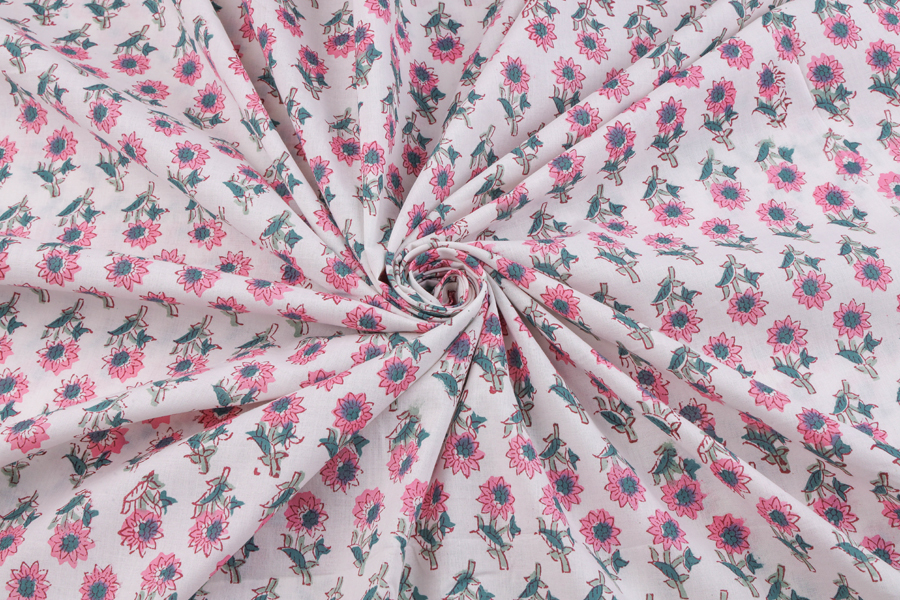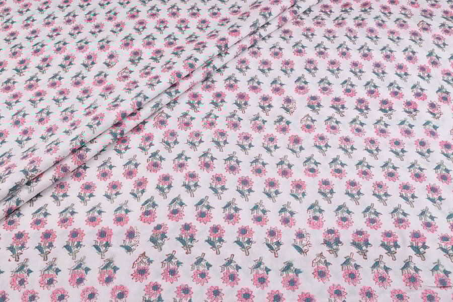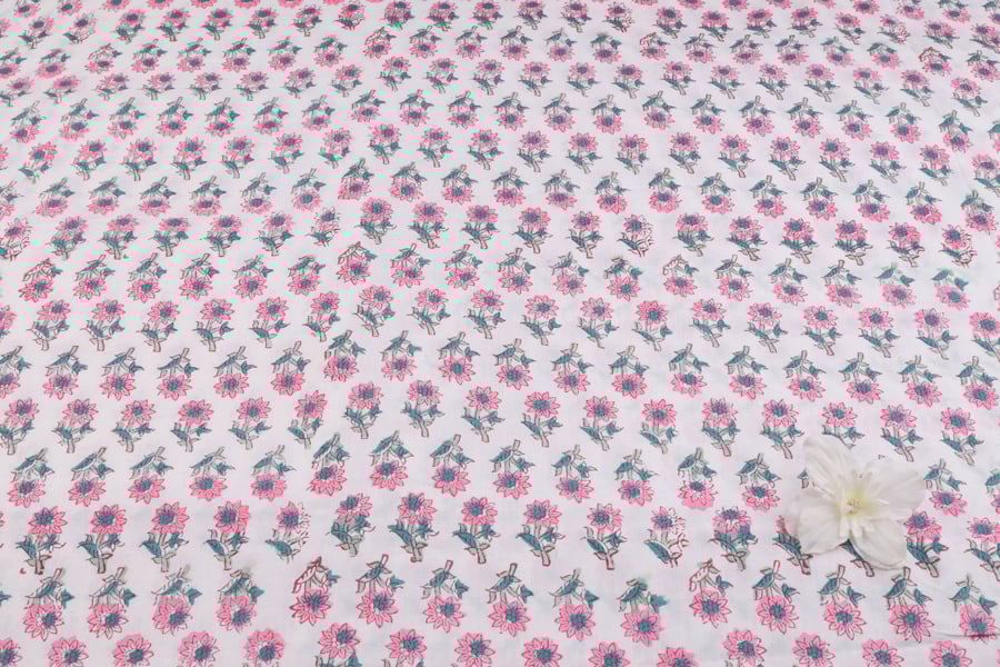 Floral Handblock Printed 100% Pure Soft Cotton Fabric