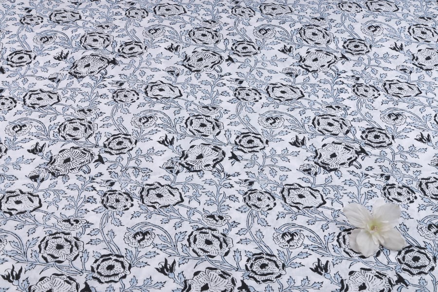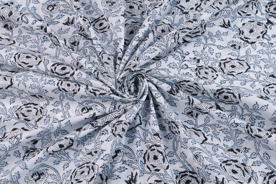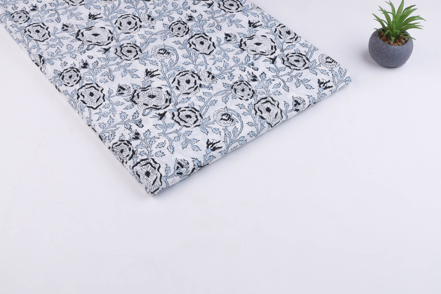 Floral Handblock Printed 100% Pure Soft Cotton Fabric