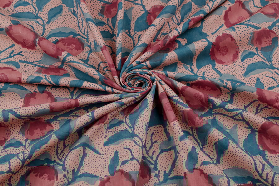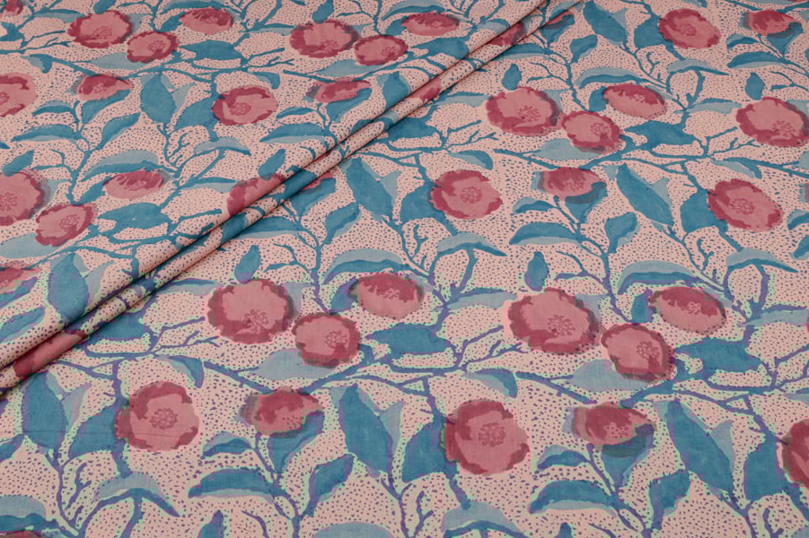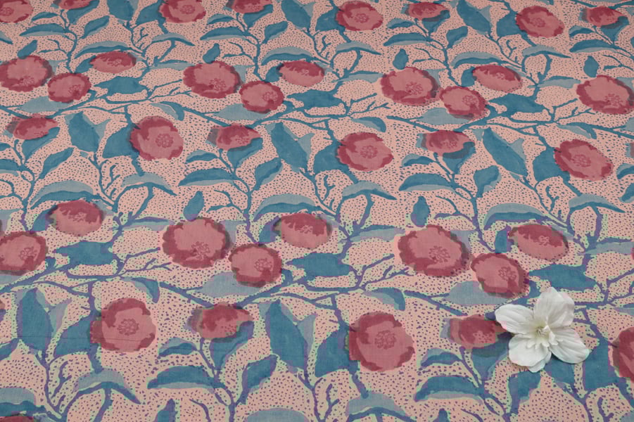Floral Handblock Printed 100% Pure Soft Cotton Fabric