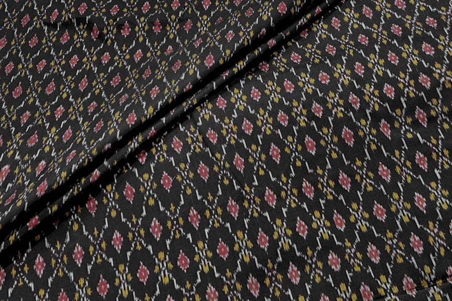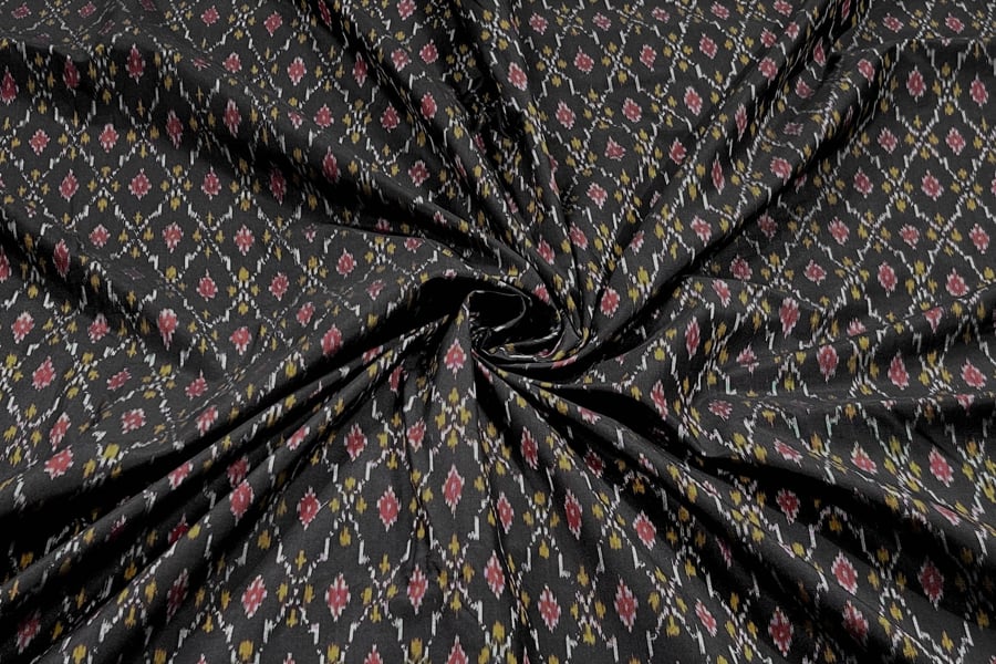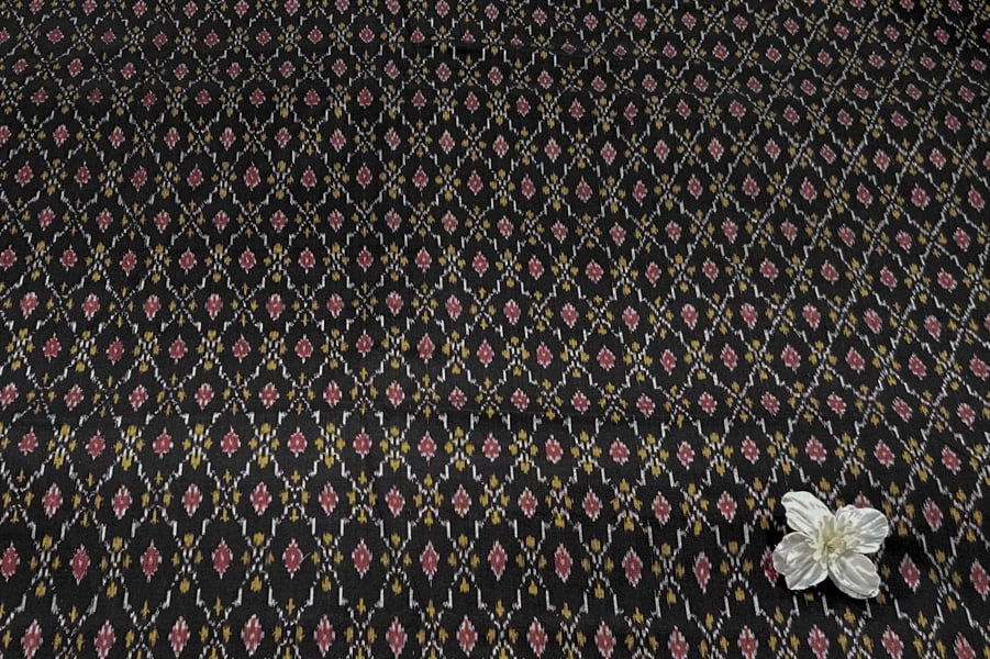 Black Authentic Handwoven Soft Silk-Cotton Ikkat Fabric