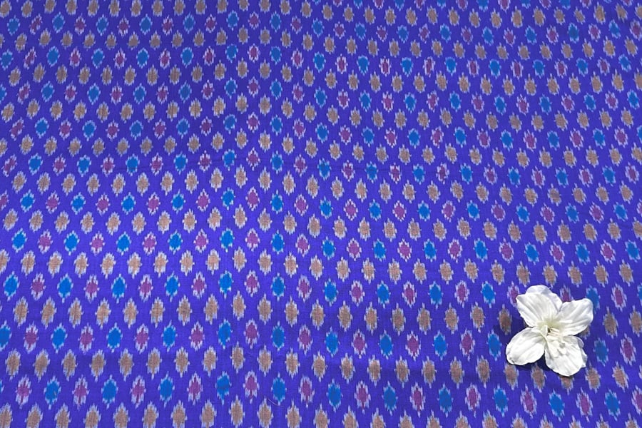 Ultrasonic Blue Authentic Handwoven Soft Silk-Cotton Ikkat Fabric
