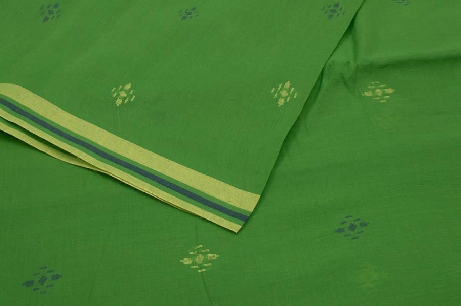 Palm Leaf Green Authentic HandLoom Woven Zari Design Flowy Soft Cotton Fabric