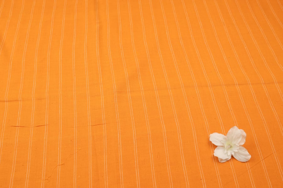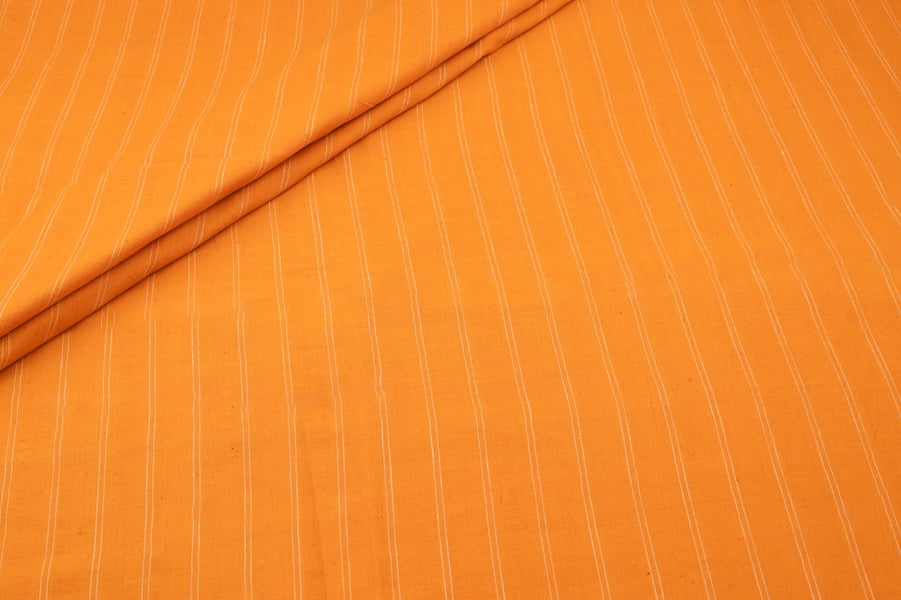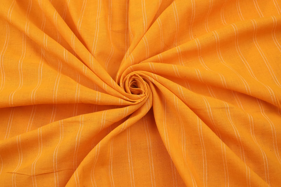 Golden Orange Yellow Flowy HandLoom Woven Stripes Pure Soft Cotton Fabric