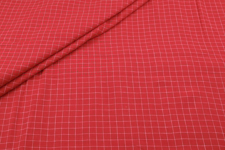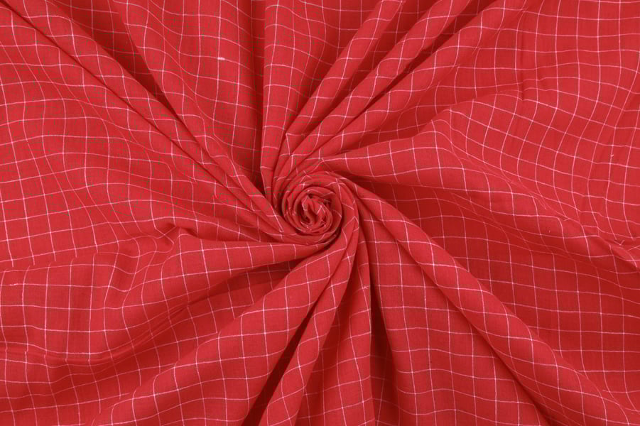 Scarlet Red Flowy HandLoom Woven Checkered Pure Soft Cotton Fabric