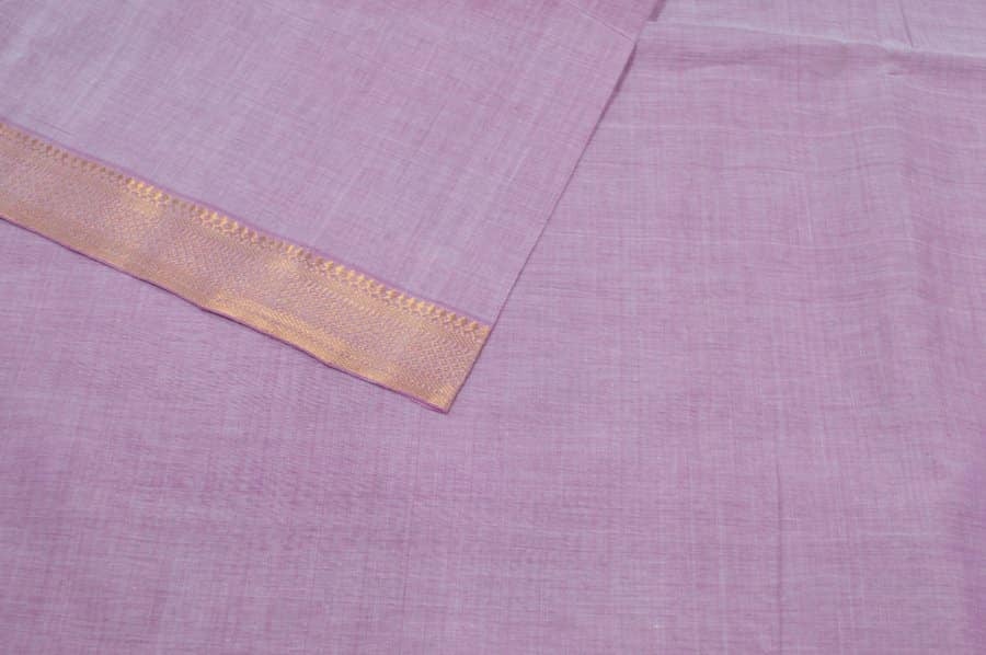 Mauve Purple Handwoven Zari Border Pure Cotton Fabric