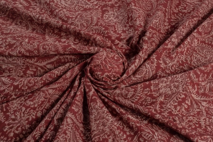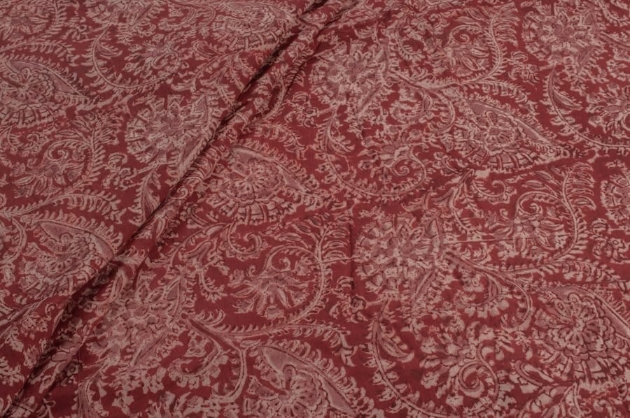 Neon Red Natural Dyed Handblock Kalamkaari Printed Cotton Fabric