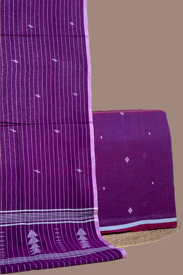 Purple - 2pc Handloom Cotton Dupatta and Handloom Woven Design Top Fabric Set