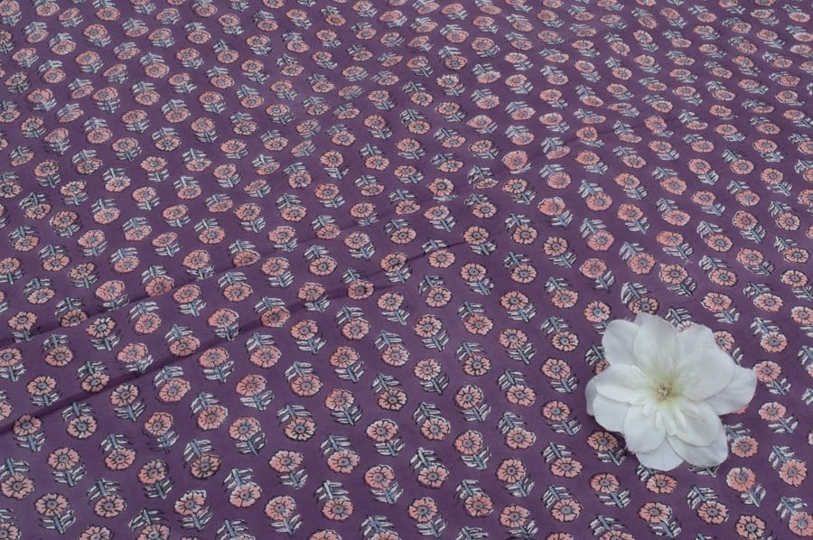 Lilac Purple Floral Handblock Printed 100% Pure Soft Cotton Fabric